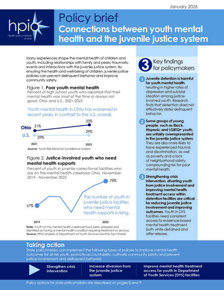 This brief outlines the root causes of mental health challenges for youth at risk for justice involvement and includes nine policy options that state policymakers can implement to improve mental health outcomes for at-risk youth and prevent justice involvement, while preventing delinquent behavior, promoting accountability and cultivating community safety.